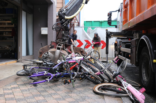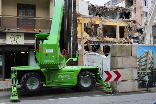 | Un petit atelier d’autoréparation à coté de ces énormes machines de démolition. | Peut-être une belle allégorie, « la vision du vélo à Tulle ». Cf. Baromètre vélo. |